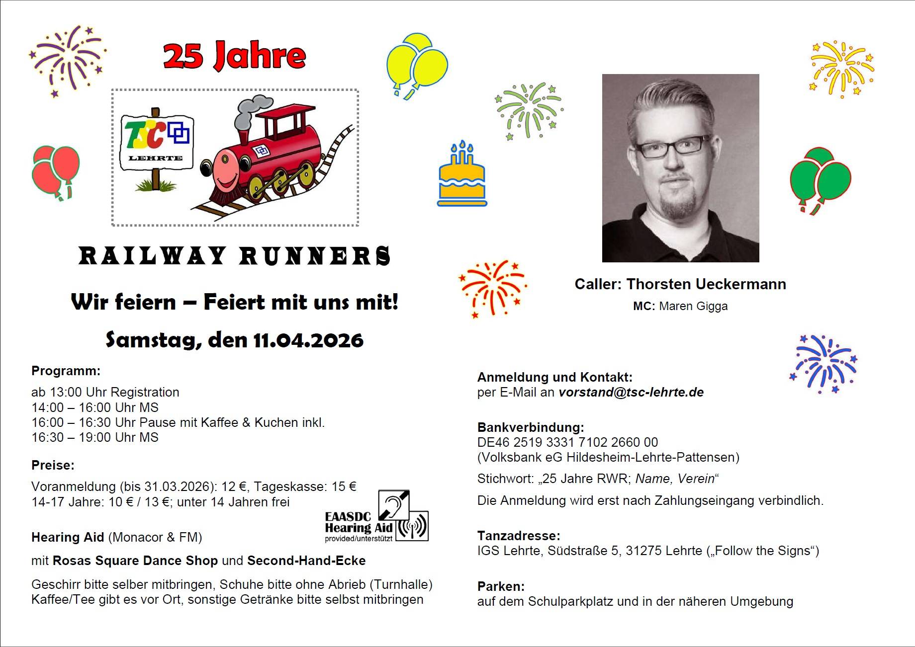11. | S | 25 Jahre Railway Runners | Flyer | 31275 Lehrte | MS | Tanz-Sport-Club Lehrte e.V. Railway Runners Leader: Thorsten Ueckermann | Alexandra Hearing Aid vorhanden |